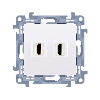 Gniazdo HDMI podwójne złożone z wykorzystaniem pokrywy teleinformatycznej Simon 10. Przeznaczone do montażu podtynkowego za pomocą śrub lub zatrzasków. Wykonane jest z wysokiej jakości tworzywa sztucznego w kolorze białym i wyposażone w plastikowy wspornik. Kształt i kolor sprawi, że będzie pasowało do tradycyjnie lub nowocześnie urządzonych pomieszczeń.Do gniazda można dobrać odpowiednią ramkę maskującą. Uniwersalna konstrukcja umożliwia łatwy, szybki i bezpieczny montaż zarówno w ramce pojedynczej, jak i wielokrotnej.