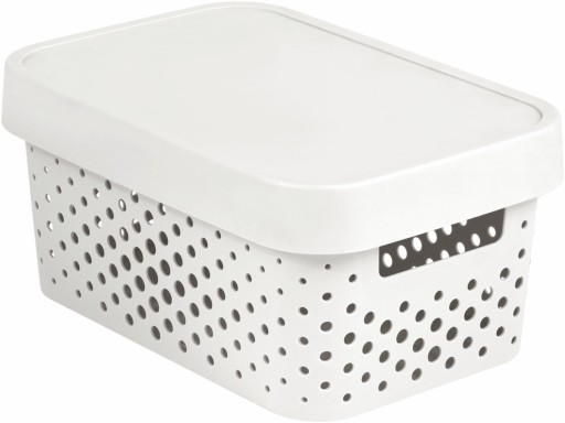 Seria pojemników Infinity to gwarancja porządku i to w dobrym stylu. Przechowamy w nim zapasy żywności, ubrania, książki, dokumenty. Słowem: absolutnie wszystko! Prezentowany pojemnik posiada przykrywkę o gładkiej powierzchni oraz ażurową strukturę, dzięki której możliwa jest ciągła cyrkulacja powietrza. Projektanci nadali pojemnikowi prosty, ale niebanalny kształt. Można je ustawiać jeden na drugim w dowolnej kombinacji. Idealnie komponuje się ze skandynawskim aranżem wnętrz.