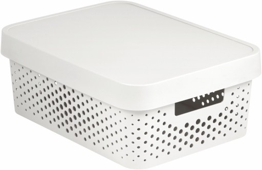 Seria pojemników Infinity to gwarancja porządku i to w dobrym stylu. Przechowamy w nim zapasy żywności, ubrania, książki, dokumenty. Słowem: absolutnie wszystko! Prezentowany pojemnik posiada przykrywkę o gładkiej powierzchni oraz ażurową strukturę, dzięki której możliwa jest ciągła cyrkulacja powietrza. Projektanci nadali pojemnikowi prosty, ale niebanalny kształt. Można je ustawiać jeden na drugim w dowolnej kombinacji. Idealnie komponuje się ze skandynawskim aranżem wnętrz.