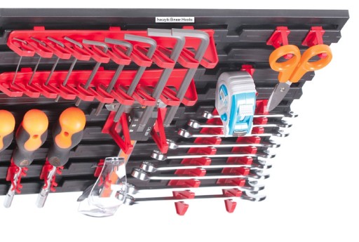 Łatwy montaż pojemników na tablicy pozwala na dowolne przemieszczanie ich w zależności od potrzeb. W każdej chwili można też pojemnik zdjąć, by uzyskać dostęp do zawartości. Tablica szczególnie sprawdzi się w garażu czy warsztacie.
