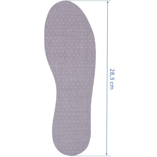 - Pianka lateksowa pochłania mikrowstrząsy dzięki czemu wkładki łagodzą objawy zmęczenia stóp