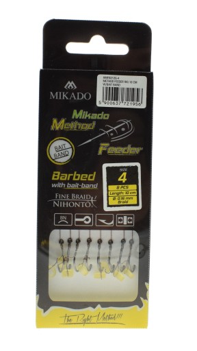 Przedmiotem sprzedaży są profesjonalnie wykonane przypony z włosem zakończonym gumka do szybkiego mocowania przynęt do method feeder MIKADO zawiązane na wyjątkowo miękkiej I mocnej plecionce Nihonto Fine Braid w maskującym brązowym kolorze.