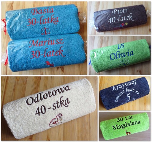 - komplety ręczników z haftem (np. ręczniki w koszu)