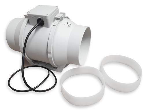 Całość łączy się ze sobą za pomocą dwóch uchylnych klamer montażowych, które dodatkowo ułatwiają konserwację wentylatora.
