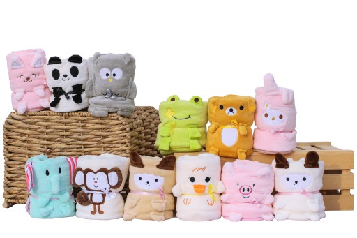 Kocyk idealnie nadaje się na prezent, gdyż jest piękny, słodki, milutki w dotyku, lekki i ciepły. Każdy kocyk posiada dwie tasiemki, dzięki którym można go zwinąć w rulonik tworząc maskotkę lub poduszeczkę. Oferujemy wiele atrakcyjnych kolorów do wyboru z przeuroczymi zwierzątkami