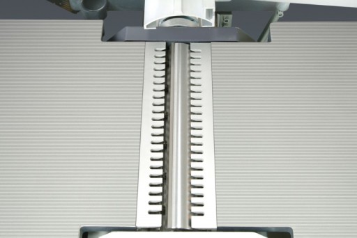 - Wielkogabarytowa, anodowana prowadnica wyrówniarki, pozwala na łatwą obróbkę. Możliwość ustawienia prowadnicy pod dowolnym kątem za pomocą specjalnej skrętnej głowicy bez szczeliny pomiędzy prowadnicą, a powierzchnią stołu.