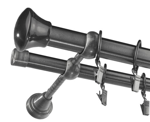 U nas możesz skompletować nietypowy zestaw kolorystyczny np. karnisz czarny z satynowymi żabkami i zakończeniami.