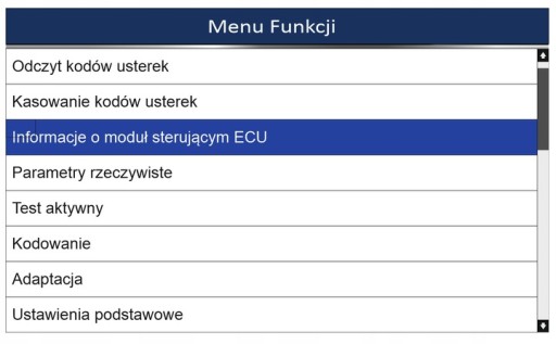 - odczyt informacji o ECU