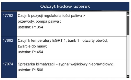 - odczyt kodów usterek