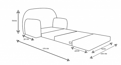 - wymiary: kanapa składana o szerokość: 100 cm o wysokość: 60 cm o głębokość: 50 cm