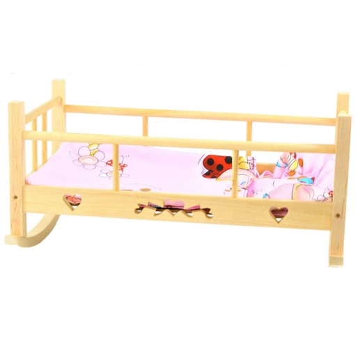 Drewniana elegancka kołyska dla lalek to niezbędne wyposażenie w pokoju dziewczynki.