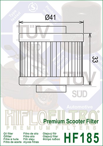 HIFLOFILTRO to pierwszy na świecie i jedyny motocyklowy filtr oleju zatwierdzony przez TÜV. Skonstruowane przy użyciu najlepszych dostępnych materiałów, wszystkie filtry oleju Hiflofiltro spełniają lub przekraczają poziomy wydajności oryginalnego wyposażenia. Dostępne dla modeli ulicznych, skuterów, motocrossu, enduro, ATV, UTV, morskich silników zaburtowych i skuterów śnieżnych.