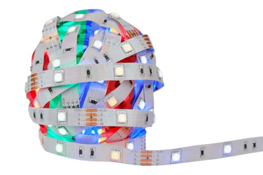 LED RGB kolorowy może świecić każdą barwą - czerwonym, niebieskim, zielonym, mieszanką tych barw oraz białym. Kolor biały w taśmach RGB uzyskujemy mieszając barwę czerwoną, zieloną i niebieską wciskając na pilocie przycisk W lub biały. Dzięki możliwości uzyskania każdej barwy, można tworzyć niesamowite iluminacje dodające charakteru każdemu pomieszczeniu.