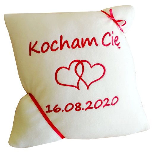 W cenie otrzymujesz poduszkę ozdobioną satynowymi wstążeczkami.