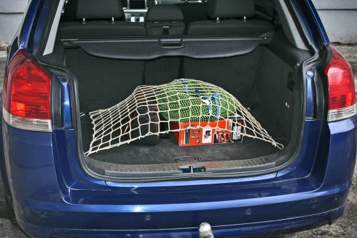 Siatka sprzedawana jest wraz z czterema karabińczykami montowanymi do fabrycznych zaczepów w aucie.