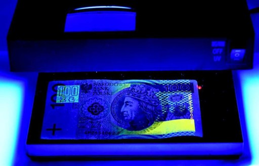 Autentyczność banknotów sprawdzisz z wykorzystaniem światła ultrafioletowego.