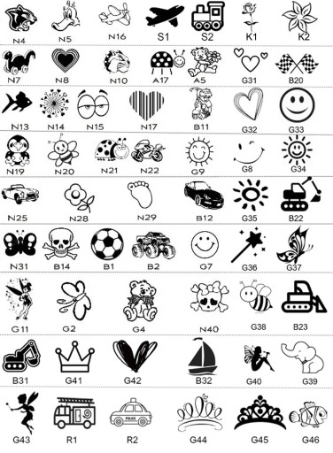Dostępne obrazki i kolory napisów zawsze pokazane są na zdjęciu w galerii DOSTĘPNE KOLORY/LOGA oraz poniżej.