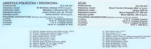 W panelach dolnych wyszczególniono dane porównawcze kontynentów takie jak: powierzchnia, najwyższe wzniesienia i najniżej położone punkty, najdłuższe rzeki i największe jeziora. W drugim panelu dolnym znajduje się lista wybranych rezerwatów biosfery MAB umieszczonych na mapie.