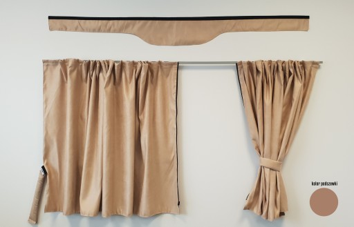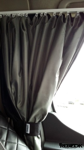 - Zasłony - dwie części lewa/prawa strona. Zasłaniają całą kabinę przed promieniami słonecznymi 180/96cm, łączenie na środku za pomocą zamka dwu-suwakowego