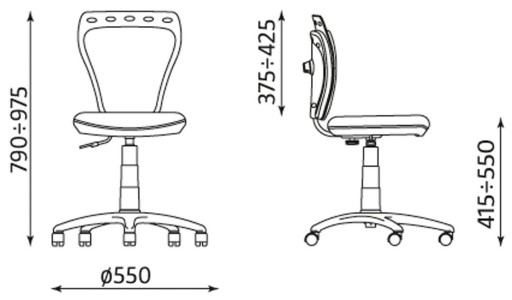 - - Płynnie regulowana wysokość siedziska za pomocą podnośnika pneumatycznego dostosowanego do wagi dziecka w wieku od 5 do 12 lat,