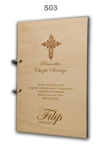 DREWNIANY ALBUM NA ZDJĘCIA Z IMIENIEM, DATĄ, DEDYKACJĄ