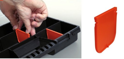 Pojedynczo organizer NOR20 składa się z sześciu głównych komór. Trzy z nich można podzielić przegródkami na 15 mniejszych komór o wymiarach 8,5x9 cm i głębokości 6 cm. Stosując wszystkie przegródki uzyskujemy 18 komór, czyli w NOR20DUO 36 komór.