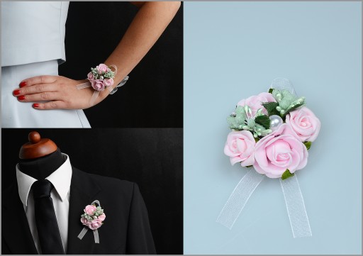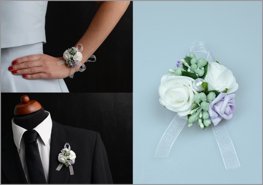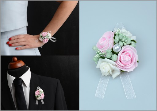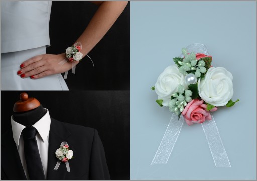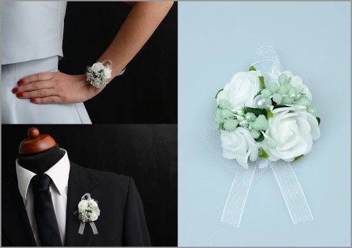Wykonane z naturalnie wyglądających różyczek oraz efektownych dodatków florystycznych wykończonych okazałą wstążką gwarantują oryginalny wygląd na weselu czy studniówce.