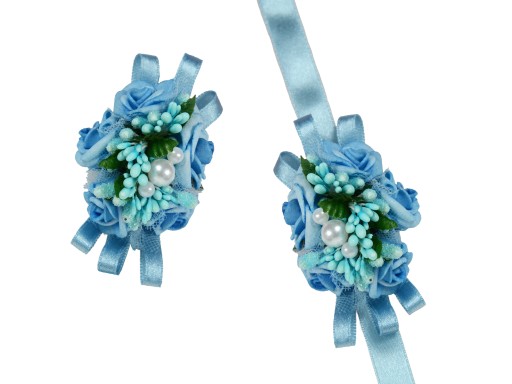 Przypinki posiadają wygodne zapięcie w formie agrafki, bukieciki wstążkę do zawiązywania na rękę.