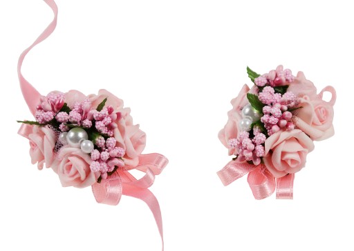 Wykonane z naturalnie wyglądających różyczek oraz efektownych dodatków florystycznych wykończonych wstążką gwarantują oryginalny wygląd na weselu czy studniówce.