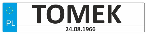 Przedmiotem aukcji jest tablica rejestracyjna w rozmiarze 27x9 cm z twoim imieniem, ksywą.