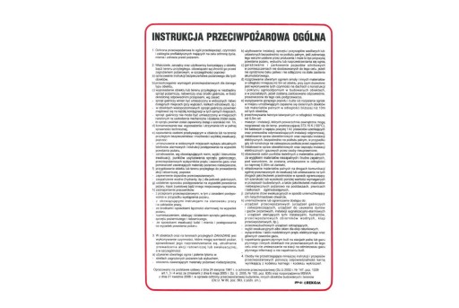 Instrukcja ogólna przeciwpożarowa obowiązująca wszystkich pracowników. Wykonana jest zgodnie z obowiązującymi wymogami i niezbędnymi normami.