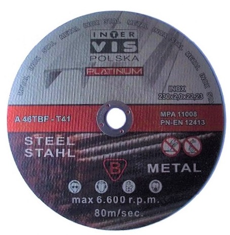 TARCZA DO CIĘCIA STALI INTER VIS POLSKA 230/2,0 mm INOX