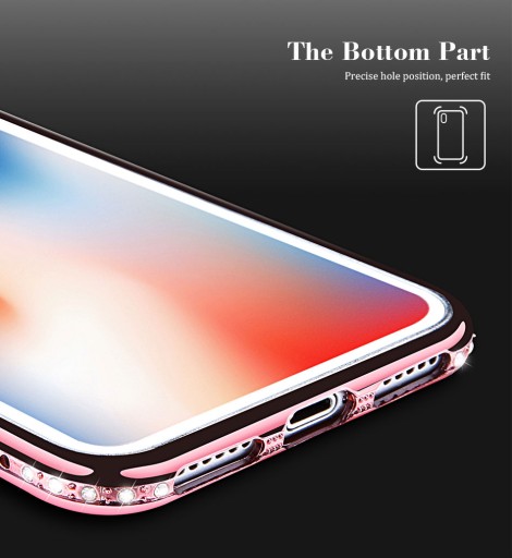 Etui cieniutkie, nie pogrubia telefonu. Iphone pięknie i naturalnie wygląda ozdobiony po bokach cyrkoniami, a tyłu również jest w całości chroniony.