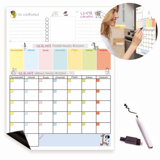 KALENDARZ MAGNETYCZNY + PISAK NA LODÓWKĘ Planer miesięczny Magnes Organizer