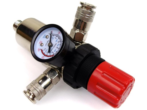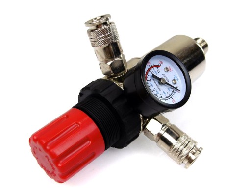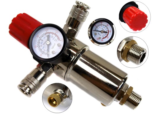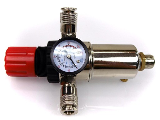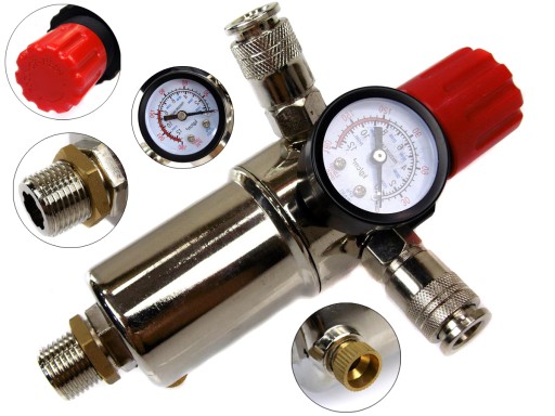 Zespół filtrujący z reduktorem zapewnia pełną kontrolę nad jakością powietrza. Reduktor z manometrem pozwala regulować ciśnienie w układach sprężonego powietrza.Odwadniacz zawierający separator wody oczyszcza sprężone powietrze z wilgoci, oleju, kondensatu i cząstek stałych. Filtruje sprężone powietrze z kropel wody, które powodują zacieki podczas malowania czy też korozję innych narzędzi.