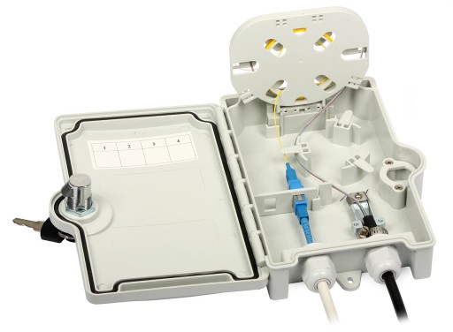 Przełącznica dedykowana jest do montażu naściennego w miejscu zakończenia linii kabla światłowodowego. Znajduje zastosowanie w instalacjach wewnętrznej sieci światłowodowej tj. w blokach mieszkalnych, biurach, magazynach.
