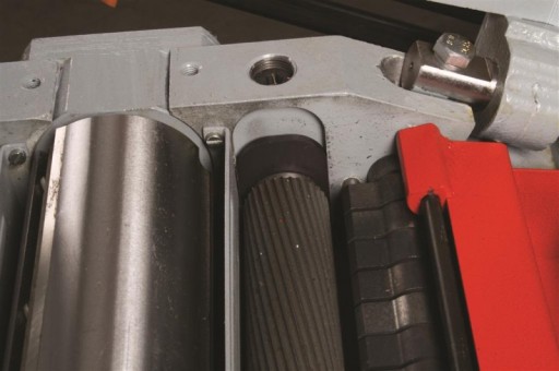 • spiralnie uzębiony wał wprowadzający zapewniający perfekcyjny transport elementu obróbki,