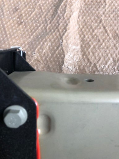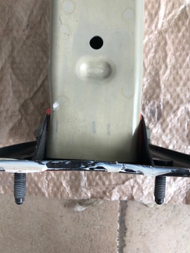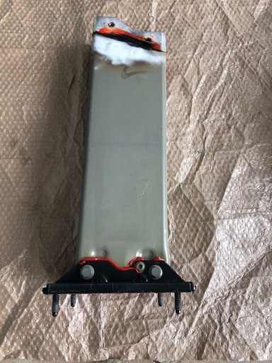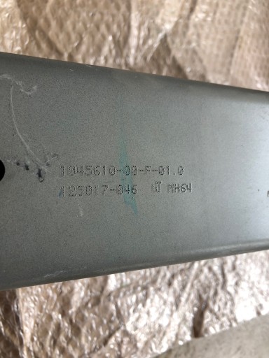 USZKODZONA: Zakończenie podłużnicy (metalowa blacha przykręcona od tyłu) jest minimalnie zgięta, sama podłużnica też posiada nieznaczne wybrzuszenie