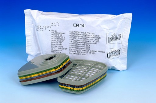 Pochłaniacz normę EN 141 - Norma określa wymagania dotyczące pochłaniaczy oraz filtropochłaniaczy stosowanych jako elementy składowe sprzętu ochrony układu oddechowego oraz wspomagania przepływu powietrza.