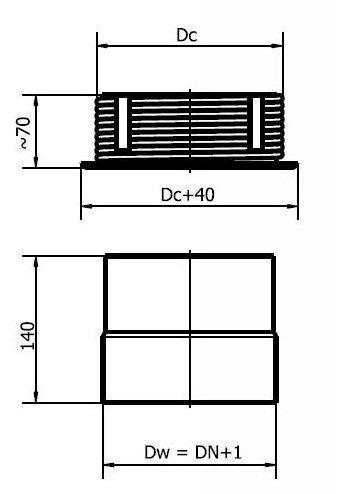 - Wymiar wewnętrzny wkładu ceramicznego Dc = 180 mm