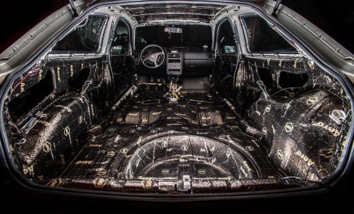Na poniższym zdjęciu widać jak skromne ilości materiałów wygłuszających stosują producenci aut!