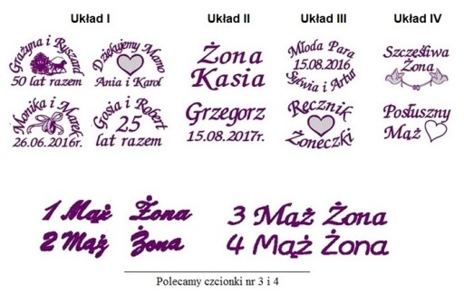 Jeśli podoba się Tobie któraś z prezentacji wystarczy, że podasz numer - haft zostanie wykonany zgodnie ze zdjęciem (nawet jeśli jest więcej słów z grafiką niż 3)