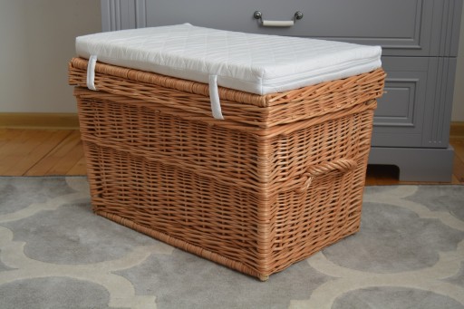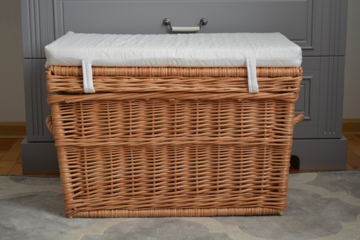 Śliczny i niepowtarzalny kufer wiklinowy do przechowywania.