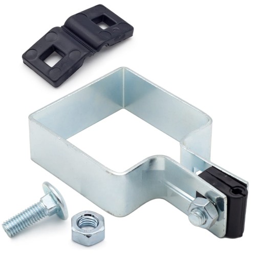 Obejma startowa-końcowa ocynkowana na słupek kwadratowy o przekroju 40x40 kompletna - do zastosowania przy montażu paneli ogrodzeniowych