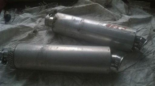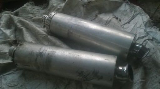 KOMPLET TŁUMIKÓW, STAN DB- JAK NA FOTO, JAKIES RYSY SZLIFY, TO SĄ CHYBA ORYGINAŁY OWINIĘTĄ BLASZKĄ ALUMINOWĄ LUB CZYMS PODOBNYM, NIE PRZEGNITE, JAK NA FOTO WSZYSTKO