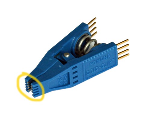 - możliwość zaciśnięcia klipsu na wylutowanej pamięci (aczkolwiek nie zalecane - łatwo uszkodzić piny pamięci i/lub blaszki klipsu).