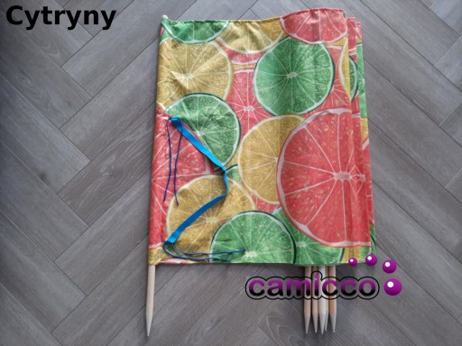 Posiada taśmę do noszenia na ramię oraz 2 sznureczki do wiązania zwiniętego parawanu, wykonany z materiału - mikrofibra