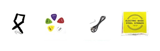 PASEK GITAROWY, KOSTKI DO GRY, KABEL 3 METROWY, KLUCZE DO REGULACJI ORAZ KOMPLET STRUN ZAPASOWYCH