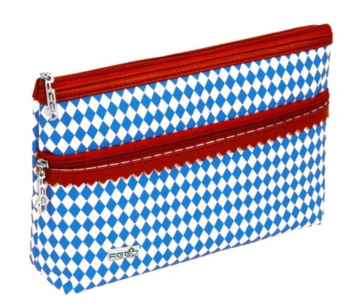 Główna komora zapinana na zamek tak jak i dodatkowa kieszonka na przedniej części kosmetyczki.