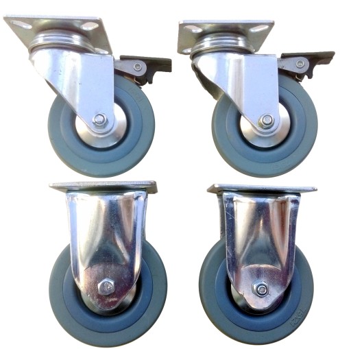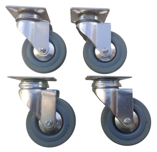 ZESTAW KÓŁ 4 SZT. FI 75 MM Z HAMULCEM NA PŁYTKĘ.